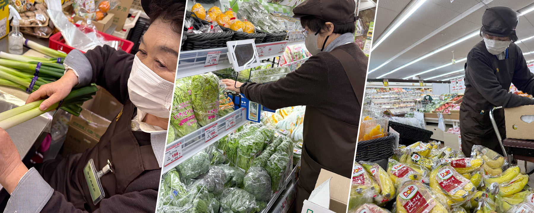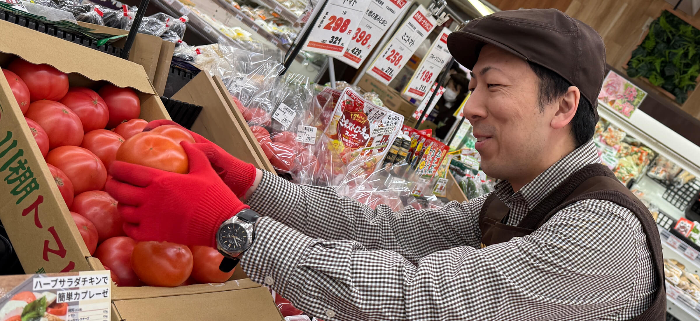 地域の季節をそのまま感じられること。かご等の資材を使い、新鮮さが伝わるように陳列しています。