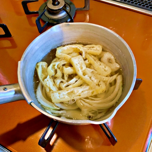 ②に玉ねぎとうすあげを入れ、一煮立ちさせます。
