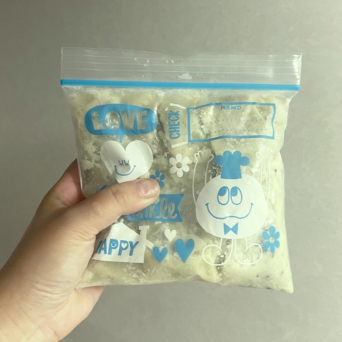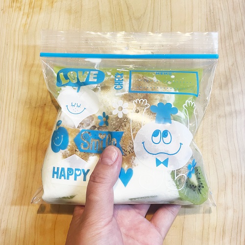 ジップロックなどの袋に全ての材料を入れて、キウイを潰しながら手で揉み冷凍庫へ。