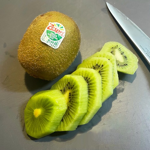 キウイの皮をむき、幅5ミリ程度にスライスします。