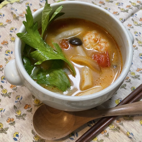 ※トムヤムペーストの代わりにキムチの素(100ml)を使ってもトムヤムクン風スープになりますよ!お試しあれ〜♪