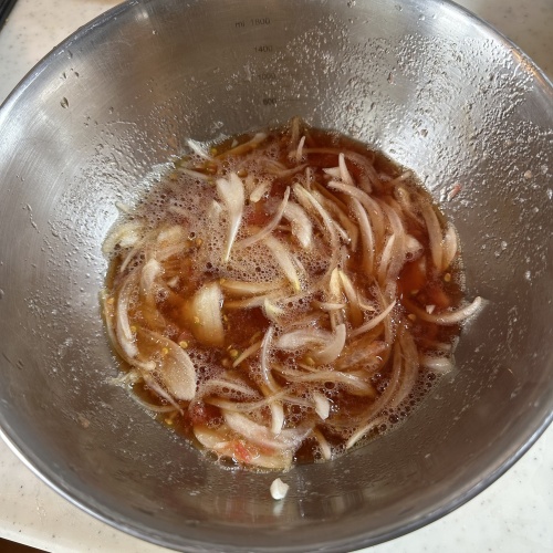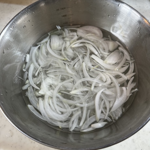 新玉ねぎを薄くスライスし10分ほど水にさらし水をきります。