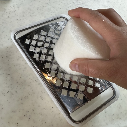 大根の皮をむきおろします。