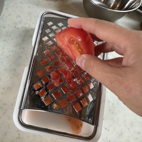 トマトを皮ごとすりおろします。