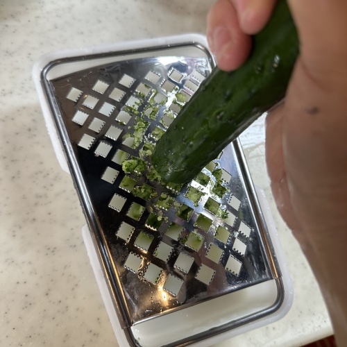 きゅうりのヘタを取りすりおろします。