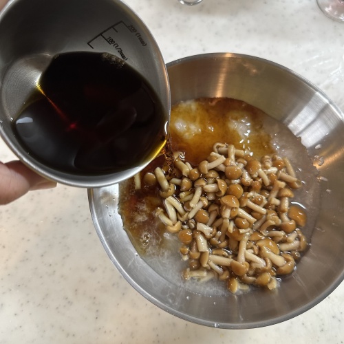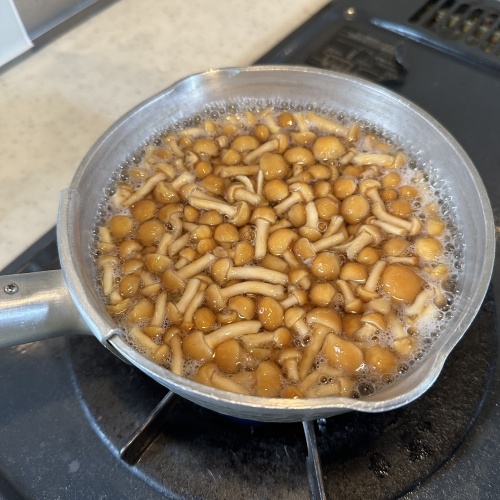 なめこを3分ほど茹で流水で洗い水をきります。