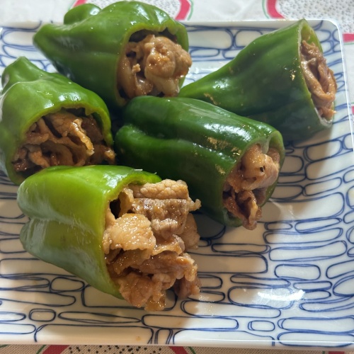 ピーマンを洗ったらヘタと種を取り除きます。