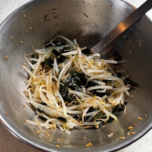 ③に水を絞ったわかめ、もやしを入れて良く和えたら出来上がり♪